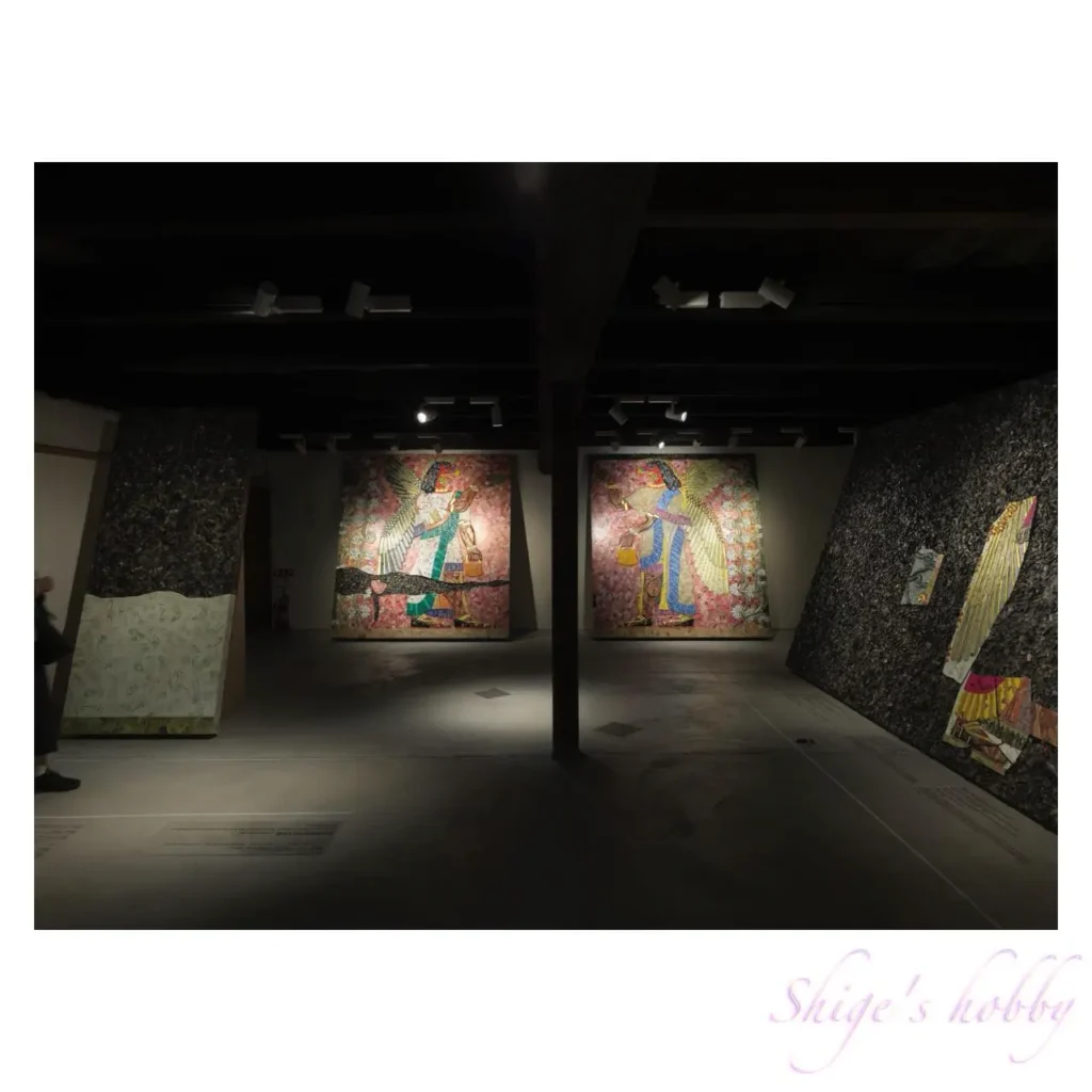イラクに存在した主にテロ組織の行為によって失われた壁画をダンボールで再現している。