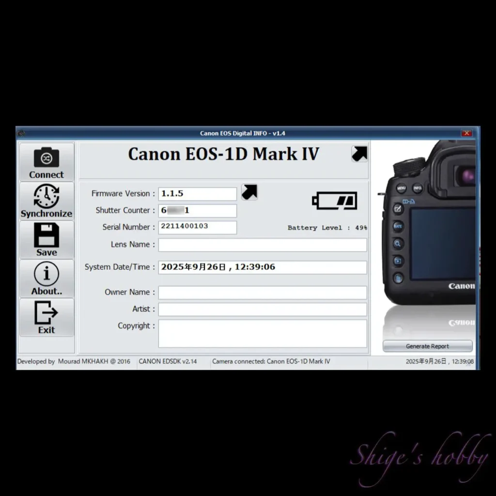 確認には専用ソフトウェアが必要で、WindowsはSourceforgeに登録されているフリーソフトウェアの「Canon EOS DIGITAL Info」が無償ソフトとして公開されている。
