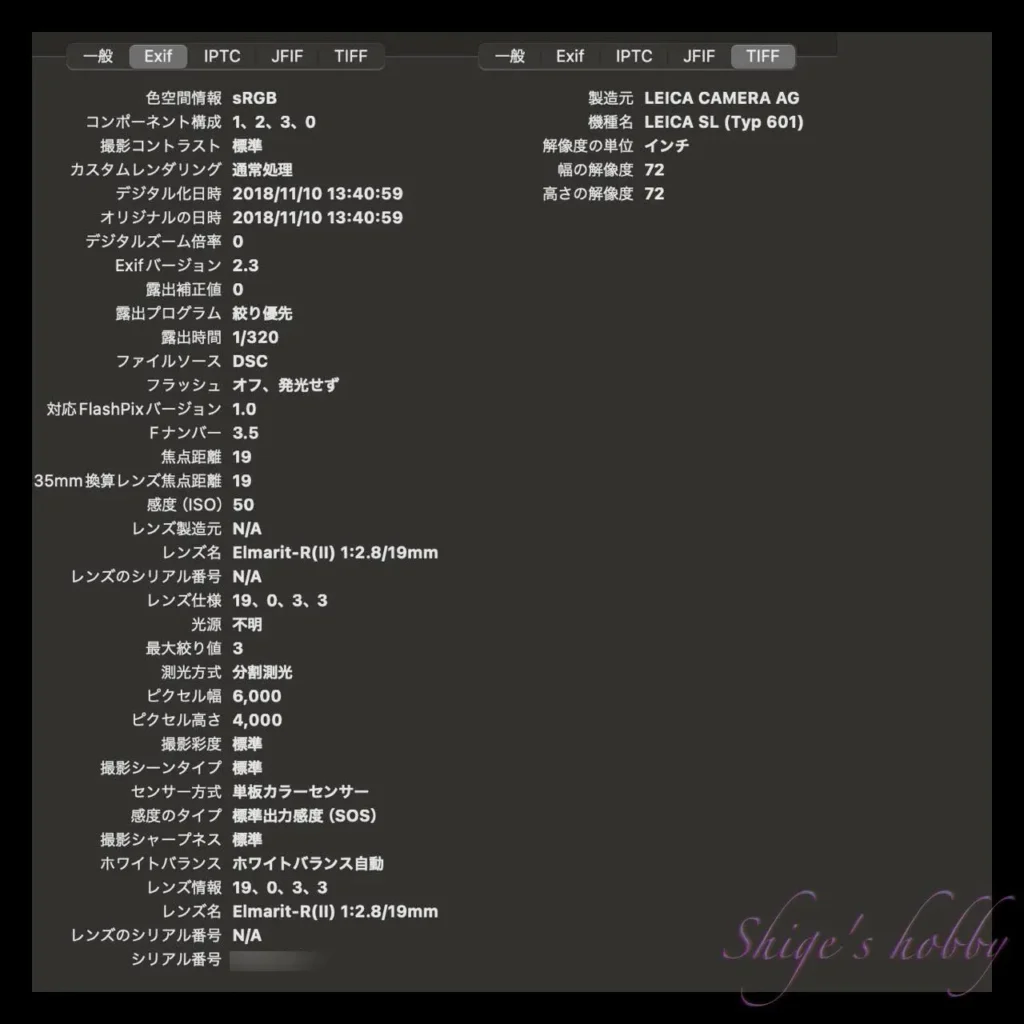 Both the Leica SL Typ601 and Leica CL Typ7323 were used with the Leica R-Adapter L (16076) mount adapter. When using the Leica R-Adapter L (16076), lenses with ROM contacts transmit registered information to the camera, which is then automatically recorded as lens information in the Exif data of the captured image.