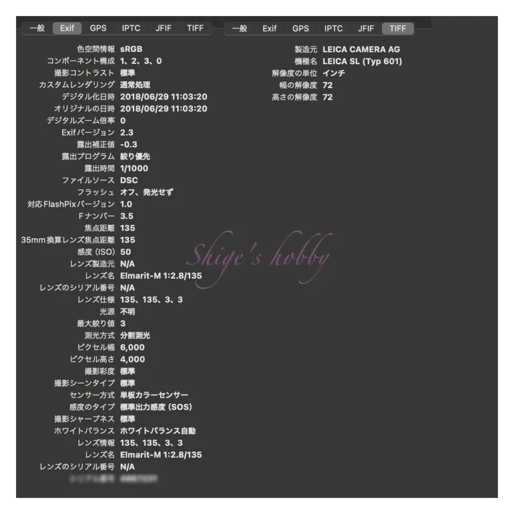 LEICA R-Adapter-L (16076)を使用すると、Exifに使用レンズの名称を残すことができる。